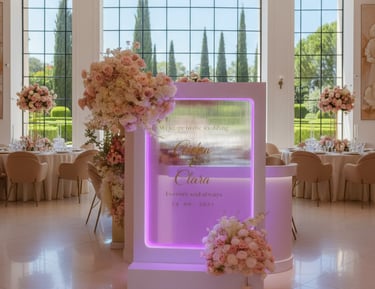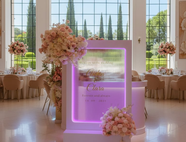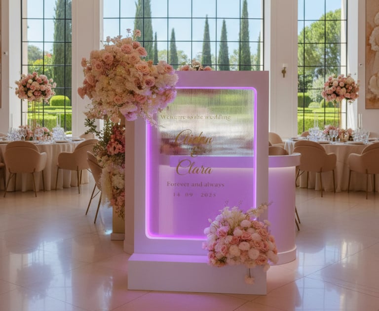Accueillez vos invités avec élégance grâce à notre fontaine de bienvenue lumineuse et personnalisée.